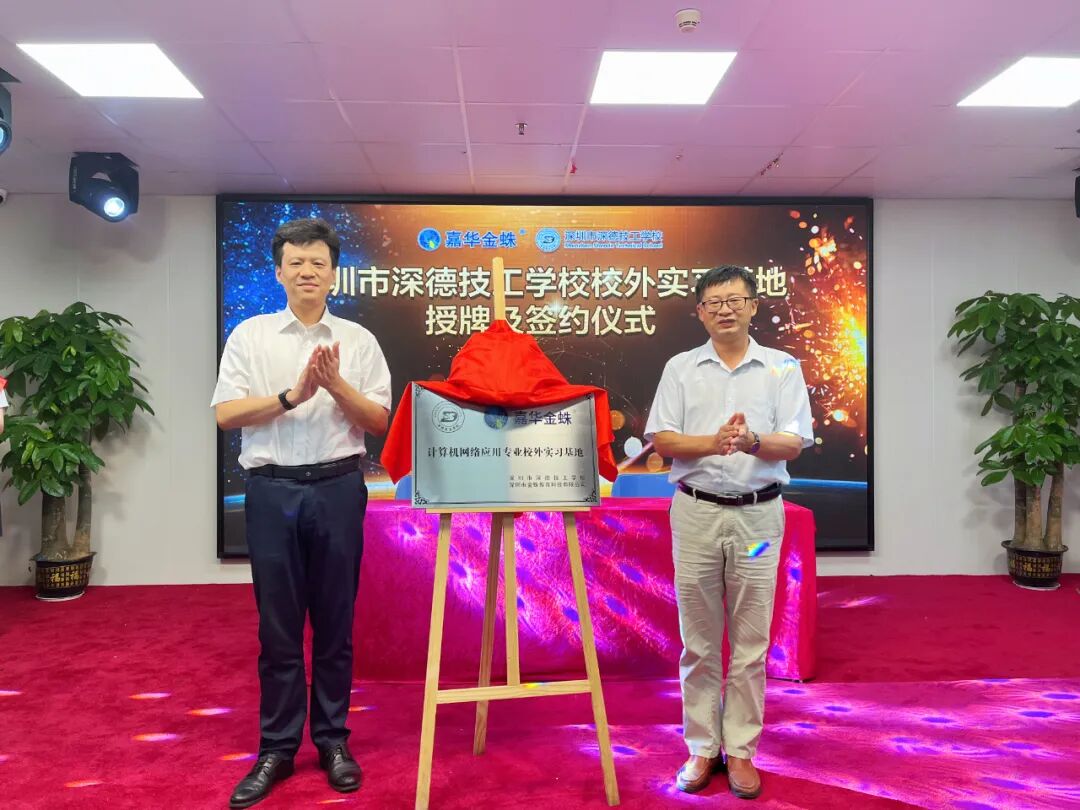 ▲深圳市深德高级技工学校与嘉华金蛛实习基地授牌及签约仪式
