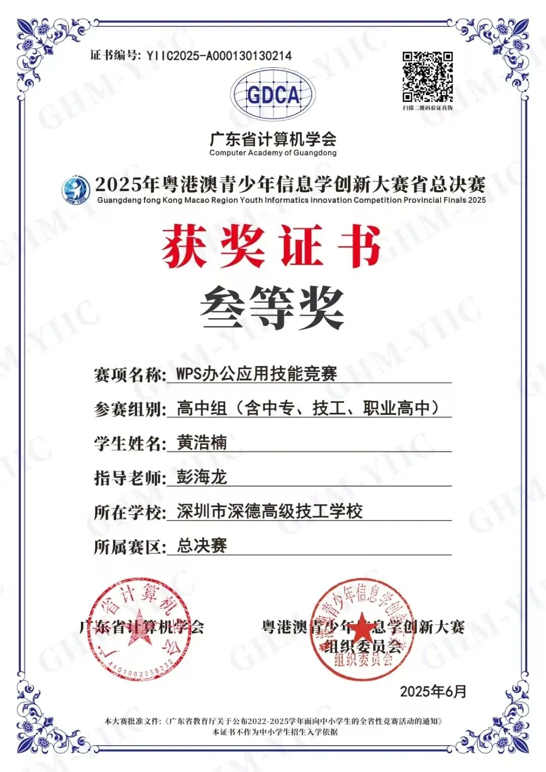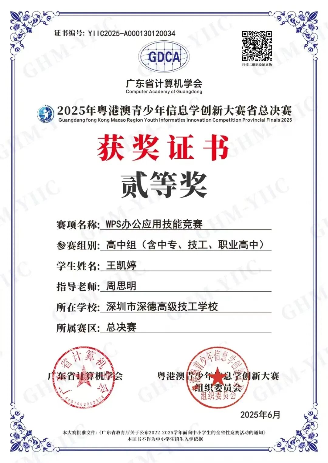 创新采用“工学一体+竞赛赋能”教学模式,培养的学生荣获全国信息技术应用水平大赛二等奖,个人获评“最佳指导老师”。